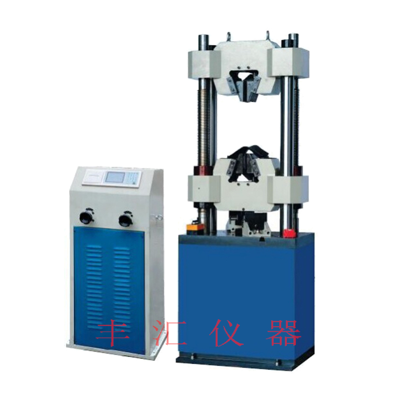 本机由四立柱双丝杠油缸下置式高强度主机及琴式油源控制柜组成,油泵采用意大利马祖奇进口低噪音高性能齿轮泵。拉伸空间位于主机上方,压缩、弯曲试验位于主机下方即中横梁和工作台之间。试验空间的调整通过移动中横梁来实现,中横梁升降采用链条传动。手动调整送油阀进油量来实现材料的拉伸、压缩、弯曲等试验。试验结束后自动采取材料的FM、REH、REL、RPO.2、RP1、RM和弹性模量E等实验结果。